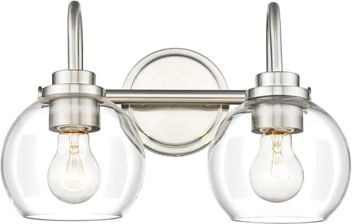 Luz de Tocador de Baño de 2 Luces, Níquel Cepillado con Pantalla de Vidrio Transparente, Luz de Tocador de Baño de Granja Sobre Espejo para Baño de
