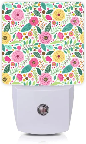Luz Nocturna de Flores Retro, Luces Nocturnas Retro Rústicas de Primavera Enchufables en la Pared con Sensores de Luz de Amanecer a Atardecer 0.5W