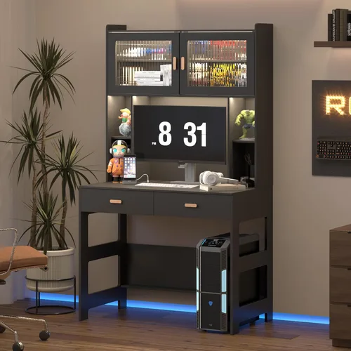 Amplio almacenamiento organizado: Este escritorio de estudio ofrece un amplio espacio para su computadora portátil y artículos esenciales. Cuenta con dos cajones debajo del escritorio, cuatro estanterías laterales y armario de almacenamiento superior, mientras que proporciona un espacio cómodo y accesible para las piernas. Su diseño compacto pero espacioso encaja perfectamente en oficinas, sala de estar, estudios, habitaciones de hija e hijo Estación de carga incorporada: ¡Manténgase encendido sin esfuerzo! Este escritorio para computadora está equipado con 2 salidas de CA, 1 puerto USB y 1 puerto tipo C, carga cómodamente tu teléfono, laptop o tableta directamente en tu escritorio, eliminando el desorden de cables durante el trabajo, estudio o juegos Luces LED de 3 colores: experimenta una iluminación versátil con 3 modos de color (blanco/amarillo/azul) y brillo ajustable. Actuando como una lámpara de cuidado ocular para reducir la fatiga Construcción duradera y elegante: hecho de tablero MDF de alta calidad, impermeable y resistente a los arañazos, este escritorio combina un aspecto moderno y elegante con una estabilidad excepcional y durabilidad duradera Instalación y soporte fiables: viene con piezas claras y numeradas e instrucciones paso a paso para una configuración rápida (recomendado para dos personas). Si tienes alguna pregunta, no dudes en ponerte en contacto con nosotros, nuestro equipo profesional posventa responderá en 24 horas