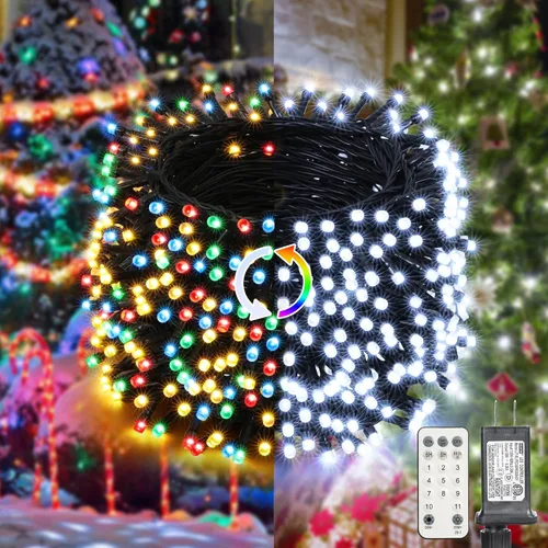 LYHOPE Luces de Navidad, 98.4 pies, 300 luces LED de hadas de Navidad, luces blancas transparentes y multicolor, con control remoto, 11 modos, luces
