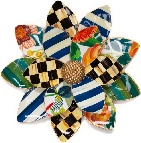 DECORACIÓN DE PARED DE FLORES ÚNICA: Nuestro Wild Wallflower tridimensional agregará un toque de color a las paredes de tu cocina, baño, dormitorio o sala de estar. Esta atrevida decoración de flores cuenta con un diseño floral único en los pétalos que se adapta a cualquier hogar. ELEGANTE DECORACIÓN FLORAL COLGANTE: Este arte de pared con flores permanece en plena floración en cualquier lugar. Está hecho de resina y presenta pétalos decorados con flores, rayas y nuestro patrón Courtly Check, todo rodeando un centro con acabado dorado. ACCESORIOS PARA DECORACIÓN DEL HOGAR: En MacKenzie-Childs, creemos que los artículos cotidianos pueden volverse extraordinarios. Desde la cocina hasta la sala de estar, puedes disfrutar de la magia de MacKenzie-Childs en cualquier lugar. Ofrecemos decoraciones de cocina, arte de pared, decoración de baño y más. EL REGALO PERFECTO: Una pieza de MacKenzie-Childs es mucho más que un regalo, es el comienzo de una colección de por vida. Nuestro arte colgante Wallflower es un increíble regalo para Navidad, boda o inauguración de la casa. ¡Bienvenido a la familia MacKenzie-Childs! MACKENZIE-CHILDS: MacKenzie-Childs nació de nuestro amor por el hogar y nuestro compromiso con el diseño fresco e innovador. Cada pieza contiene la sorpresa y la alegría de lo inesperado.