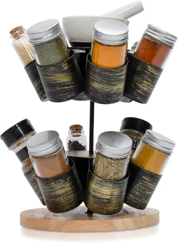Made Easy Kit Organizador de carrusel para especias y condimentos con mortero y mortero (negro)