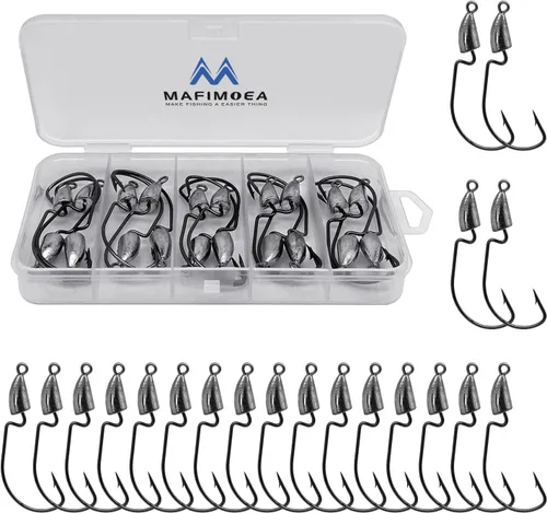 【Elección de calidad】Los ganchos de cebo de natación con peso están hechos de material de acero de alto carbono, lo suficientemente fuertes como para no temer que se doblen o se rompan. Las materias primas de alta calidad combinadas con la exquisita artesanía hacen que estos sean duraderos y antioxidantes, lo que significa que nuestro cabezal de plantilla de cebo puede servirte durante mucho tiempo. Ganchos con peso en forma de bala: hay un peso en forma de bala en la parte superior de los anzuelos de pesca de cebo. La forma de bala hará pequeñas salpicaduras en el agua, lo que no asustará a los peces. Y el peso emparejado ayudará a hundir o nadar el cebo de pesca amañado hacia la zona de ataque de forma natural, no se atascará en malezas, hierba o rocas en la parte inferior. Diseño de gancho de manivela: el diseño de gancho de hombro curvado te permite pescar en más áreas. Se pueden utilizar para montar cebos de plástico para nadar, señuelos de cola rizada, cangrejos para pesca de lubina con más firmeza. Y el diseño sin enganches de estos ganchos de gusano para pesca de lubina le permite penetrar en hierba, malezas, lirios, arbustos, madera, rocas y otras cubiertas mejor que cualquier otra plataforma de perforación. 【Mejora eficazmente la tasa de captura】Gancho afilado con púa, material de acero inoxidable de carbono de alta calidad antideslizante, resistencia a la corrosión para usar libremente en agua salada, estas características juntas obtendrán la máxima tasa de captura. Los cabezales de plantilla de plataforma Ned están equipados con una caja de plástico para su fácil transporte, lo que te ahorra mucho tiempo para disfrutar de tu precioso tiempo de pesca. Amplia aplicación: nuestras cabezas de plantilla para pesca de lubina pueden mantener tu cebo fijo, hacer que estos anzuelos de natación sean compatibles con una amplia gama de cebos suaves, y se utilizan para atrapar varios peces, como crappie, lucioperca, azul, trucha, lubina, etc. Estas cabezas de plantilla pintadas son adecuadas para la pesca de agua dulce y salada.