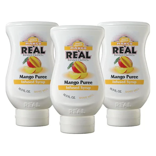 PACK DE 3 BOTELLAS: Perfecto para refrescos italianos, cócteles de cerveza, bebidas sin alcohol y daiquiris y coladas congelados o agitados MUNDO REAL DEL SABOR: Mango Real Infundido Exotics está impregnado con mangos Alfonso de la India SQUEEZABLE: No hay latas desordenadas o dificultad para almacenar porciones no utilizadas. La apertura de la botella de boca ancha ayuda a eliminar los residuos al permitir un fácil acceso con una cuchara de bar o espátula, y la boquilla en forma de volcán permite una mezcla sin goteo FRESCURA GARANTIZADA: Desarrollado específicamente para permanecer uniforme con una separación muy mínima del producto con barrera de oxígeno incorporada para garantizar la frescura del producto NO SOLO PARA BEBIDAS: Excelente en aplicaciones culinarias como repostería y postres. Perfecto para experimentar con conceptos de gastronomía molecular como espuma de frutas o caviar