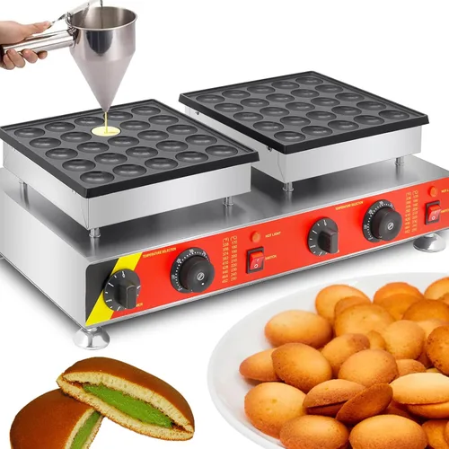 Cocine mini panqueques en minutos Hacer comida deliciosa se ha vuelto más fácil Parámetros Tamaño de la máquina: 24.4* 12.2* 7.8 pulgadas/24.409x12.205x7.874 in Material: acero inoxidable Potencia: 1600 W Rango de temperatura: 122.0-572.0 °F/122-572 ℉ Temporizador: 0-5 minutos Forma del molde para hornear: Redondo Diámetro del molde para hornear: 1.8 pulgadas/1.772 in Número de agujeros en la bandeja para hornear: 50 unidades. Paquete: 1* máquina para hacer panqueques Adecuado para restaurantes de comida rápida, cantinas escolares, cafeterías, fiestas y otros lugares. Aviso: 1. Debido a la diferencia de los diferentes monitores, la imagen puede no reflejar el color real del artículo. Ten en cuenta esto antes de comprar. 2. Puede haber una diferencia de 0.4-0.8 pulgadas debido a la medición
