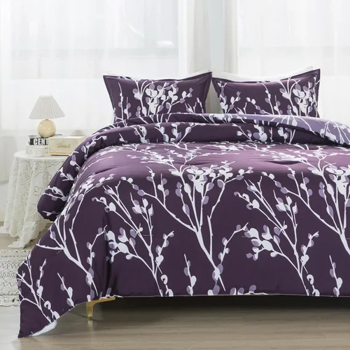 Andency Juego de edredón morado tamaño individual (66 x 90 pulgadas) – Juego de cama reversible de 2 piezas de microfibra suave y ligera con ramas