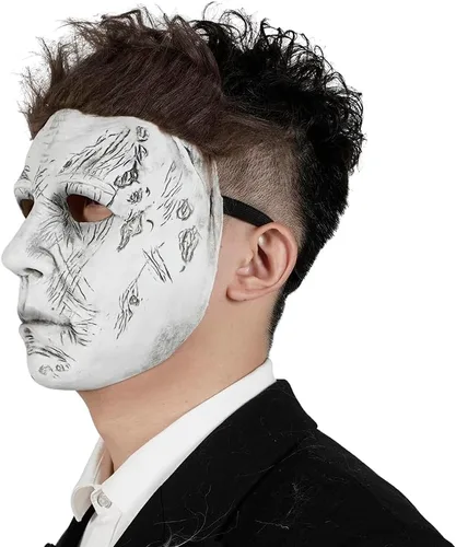 Máscara Michael Myers 3/4 con pelo adherido Diseño detallado: la escultura intrincada captura los rasgos faciales distintivos del personaje, las cicatrices cosidas y la mirada intensa. Cobertura facial completa: la máscara cubre toda la cara para un aspecto completo e inmersivo y un buen aliento. Uso versátil: perfecto para fiestas de disfraces de Halloween, atracciones de casas encantadas o exhibiciones de accesorios de películas. Construcción duradera: material de látex de alta calidad que garantiza un uso duradero y un uso repetido.