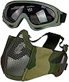 Máscara de Airsoft con Gafas, Máscara de Malla Plegable de Media Cara con Protección para los Oídos para Paintball, Tiro, Cosplay, Juego CS