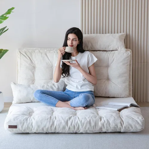 MAXYOYO Sofá cama plegable, puf copetudo con almohadas, colchón de piso para adultos, sofá de piso extra grueso y largo, sofá cama de piso Beige