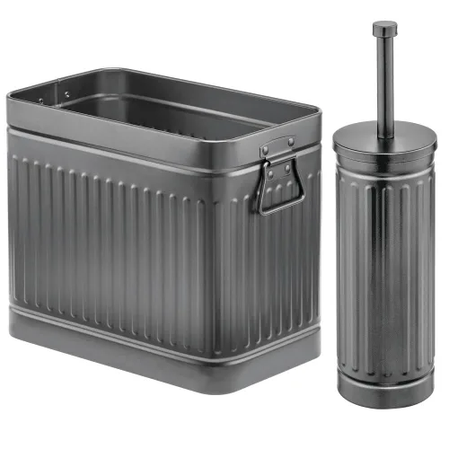 mDesign Cepillo de inodoro compacto de metal, cubo de basura rectangular, cubo de basuracubo de reciclaje, combo para limpieza y almacenamiento