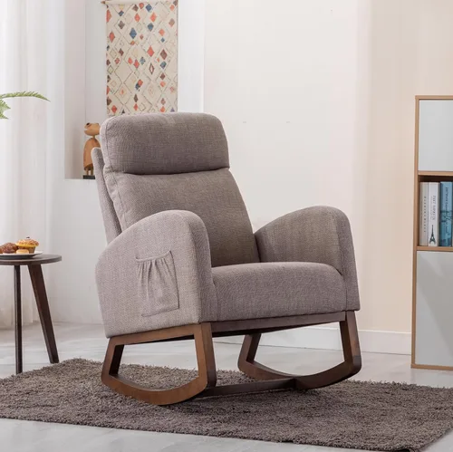 Mecedora moderna para guardería, silla mecedora tapizada con bolsillo lateral, cómoda silla de guardería con respaldo alto, sillón decorativo