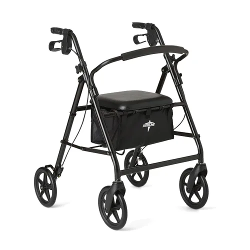 Medline Andador con ruedas de aluminio con asiento, plegable Mobility Rolling Walker tiene ruedas de 8 pulgadas, color negro