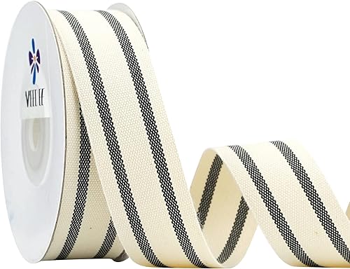 [ COLOR ] Cinta de algodón 100% a rayas de color marfil y negro. Tamaño: cinta de tela de algodón de 1 pulgada de ancho, 10 yardas (aprox.) 30 pies de longitud por bobina. Material natural de primera calidad con tacto suave, con borde de rayas clásicas en ambos lados de la cinta para manualidades. Es fácil para ti decorar tus regalos o añadir a tu proyecto de manualidades y con su durabilidad, sin decoloración y sin olor. Se puede atar o pegar en paquetes de regalo y proyectos de manualidades, ¡puedes sentirte libre de usarla! Estas cintas simples y elegantes de algodón a rayas pueden aplicarse para decorar tus manualidades navideñas, como decoración de manualidades de Halloween, lazos florales, envoltura de regalos, corona de Halloween, pegatinas para álbumes de recortes, fiestas de cumpleaños, baby shower, Acción de Gracias, decoración de cocina, decoración de oficina, decoración de granja, guirnalda, escalera, puertas, paredes, ventanas, decoración casera para el cabello, decoración del hogar y más, trayendo el ambiente festivo alegre para tu familia. Nota especial: El color real puede ser ligeramente diferente de las imágenes mostradas en el sitio web debido al brillo de tu monitor y la luminosidad de la luz. ¡Feliz manualidad!