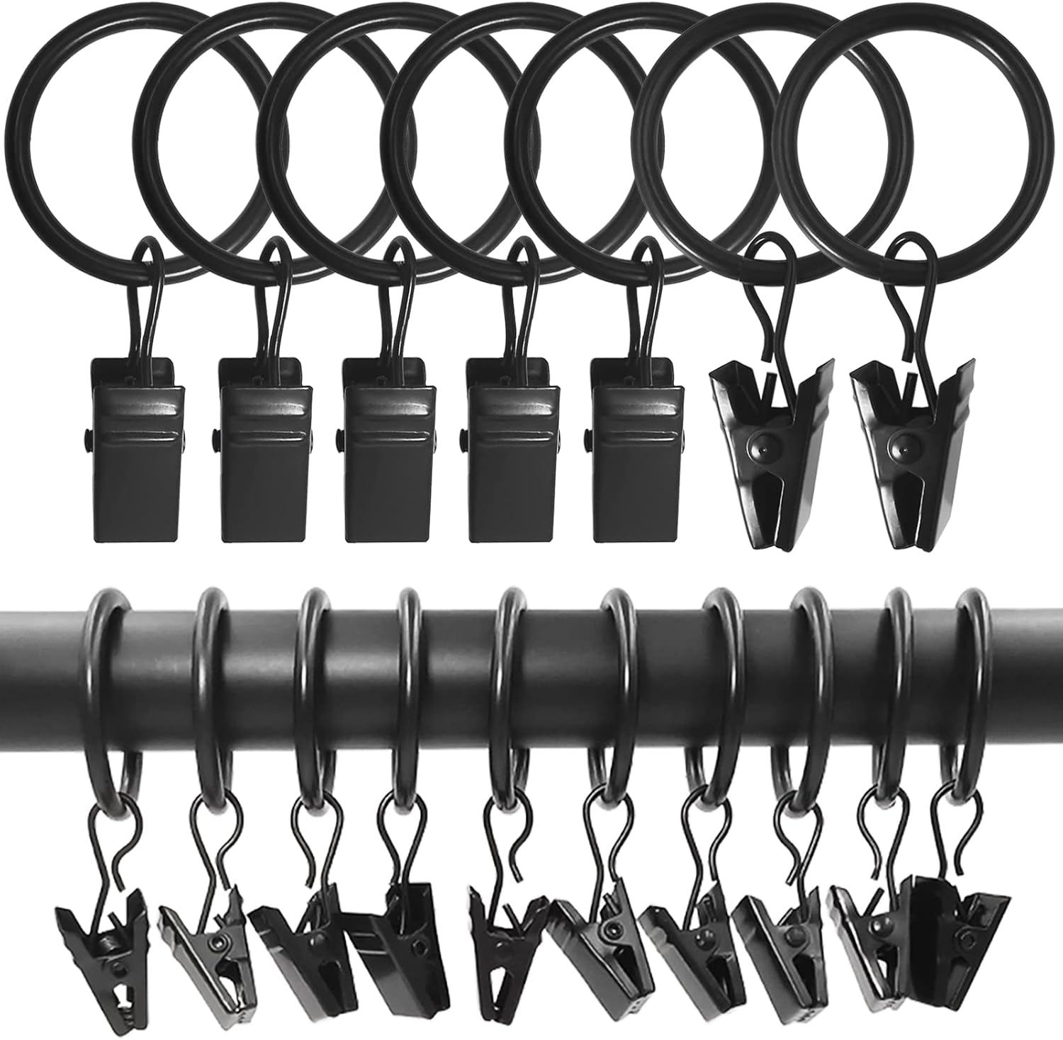 Lansian Paquete de 44 anillos de cortina con clips, ganchos de cortina de 1 pulgada de diámetro interior, anillos negros vintage para colgar