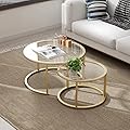 ¿Para qué sirve Mesa de Centro Round Coffee Table Set of 2 wFaux Marble Top Modern Side End Table Gold Metal Frame Corner Nesting Cocktail Table for Living Room?