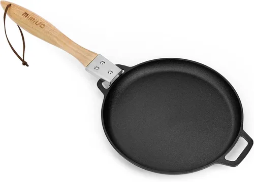 Mimiuo Sartén de hierro fundido de 12 pulgadas con mango de madera extraíble, sartén redonda antiadherente para fajita para horno de pizza,