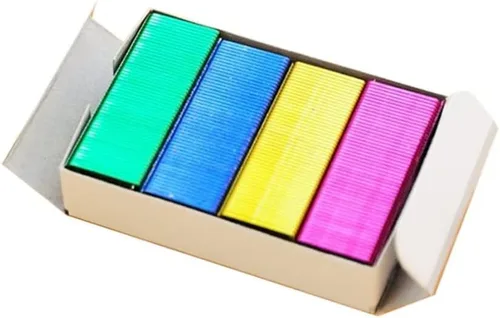 Tipo: Como se muestra, Premium para codificación de colores, organización y apariencia de belleza. Puntos de cincel para una fácil penetración. 800 grapas de color metálico estándar 10ï¼. Apto para todas las grapadoras estándar. Las grapas estándar han estado ofreciendo una calidad perfecta en productos escolares y de oficina durante años. Dedicados a la mejora continua, estamos orgullosos de ser un líder responsable de la industria.