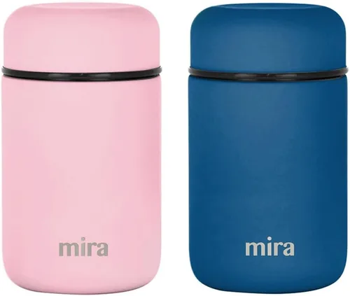 Pregunta sugerida sobre MIRA - Paquete de 2 tarros térmicos aislados para comida caliente y sopa, contenedor compacto de acero inoxidable al vacío, 13.5 onzas, mezclilla ¿Qué incluye exactamente este set?