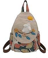HUANGGUOSHU Mochila de lona bohemia tejida de algodón para mujer, con múltiples bolsillos, estilo retro, linda mochila tipo cartera, Yutu Luna,
