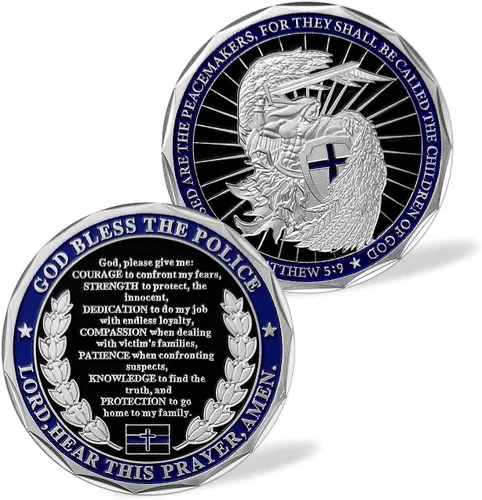 Tamaño: aproximadamente 1.57 pulgadas de diámetro y 0.12 pulgadas de grosor, viene con una vitrina protectora de plástico. Hermosa moneda de desafío grabable en 3D hecha a mano. San Miguel es el santo patrón de la aplicación de la ley Mateo 5:9 "Bienaventurados los pacificadores, porque serán llamados hijos de Dios" Un regalo perfecto para cualquier persona que actualmente sirva o planee servir en el departamento de aplicación de la ley policial.