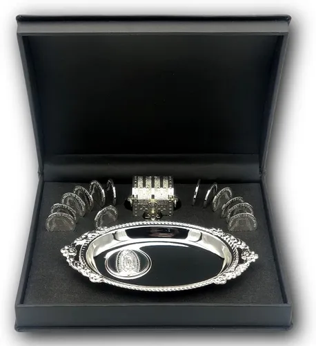 Hermoso conjunto con 13 Arras, bandeja y caja del tesoro. Perfecto para crear momentos inolvidables para los recién casados. Abrazando la práctica tradicional de la ceremonia de boda de las culturas mexicana, latina y española, este increíble juego de monedas se puede utilizar como promesas para los padres, la novia y el novio, o homenajeados especiales. Estas monedas de unidad también se pueden compartir en eventos especiales como primera comunión, bautismo, confirmación y más. Las monedas unitarias vienen en 8 diseños originales en plata para ayudarte a seleccionar el toque especial correcto para tu evento y crear recuerdos duraderos. Estas monedas de unidad hechas a mano están especialmente hechas para esta importante ocasión, considerando la calidad y los detalles de cada pieza de nuestro juego de monedas.