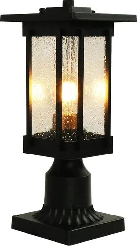 Construcción de alta calidad: hecho de hierro fundido resistente con tratamiento de superficie negra con recubrimiento de polvo anticorrosión que no se oxida, decolora ni se pela. Proporciona años de rendimiento confiable al aire libre mientras mejora el atractivo exterior de tu hogar. Elegante diseño de cristal de burbuja: los paneles de vidrio texturizado hechos a mano crean impresionantes efectos de luz de estrellas cuando se iluminan. Emite una luz cálida y acogedora que transforma tu espacio al aire libre en un refugio sofisticado mientras proporciona una iluminación suave y sin reflejos. Durabilidad para todo tipo de clima: construcción impermeable IP44 que resiste fuertes lluvias, nieve y temperaturas extremas (-4.0 °F a 104.0 °F). La carcasa sellada protege los componentes internos, asegurando un funcionamiento confiable durante todo el año en cualquier condición climática. Iluminación de bajo consumo: equipado con enchufe E26 estándar compatible con bombillas LED, incandescentes y CFL (máximo 60 W, bombilla no incluida). Recomendamos bombillas LED de 8 a 10 W que ahorran hasta un 80% en costos de energía en comparación con las bombillas tradicionales mientras proporcionan un brillo óptimo. Instalación fácil de usar: incluye instrucciones paso a paso, base de montaje y todos los accesorios para una instalación rápida de 20 minutos. El diseño precableado se conecta fácilmente a circuitos domésticos estándar de 120 V. Aplicaciones versátiles: altura perfecta (15.6 pulgadas) para entradas, pasillos, patios y senderos de jardín. Crea un ambiente acogedor para los huéspedes mientras mejora la seguridad alrededor de su propiedad.