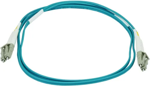 OM3 Aqua cable multimodo optimizado por láser con núcleo de 164.0 ft y diámetro de revestimiento de 410.1 ft. Conectores LC duales codificados por colores en cada extremo. OFNR (fibra óptica, no conductora, vertical) clasificado por UL, lo que lo hace seguro para su uso dentro de las paredes y entre los pisos de edificios de clase comercial. Fabricado con fibras ópticas de la marca Corning.
