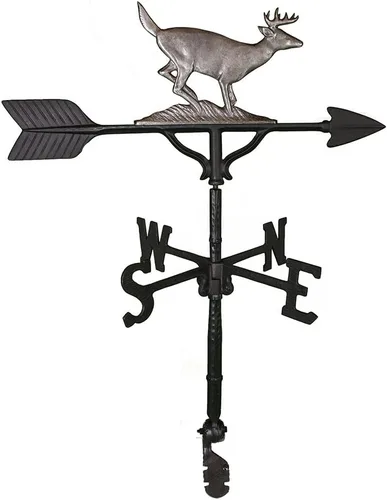 Veleta de aluminio fundido de 32 pulgadas. El mástil, las letras direccionales y la flecha están acabados con un acabado de esmalte negro satinado para mayor durabilidad. Esta veleta se recomienda para su uso en una cúpula de 24 a 30 pulgadas, garaje para dos autos o casa de tamaño mediano.