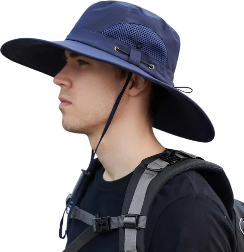 Muryobao Sombreros de sol para hombre, UPF 50+, malla impermeable, ala ancha, sombrero de pesca