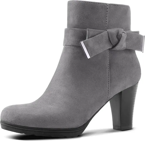 mysoft Botines para mujer con tacón, tacón grueso apilado, cremallera al tobillo para mujer