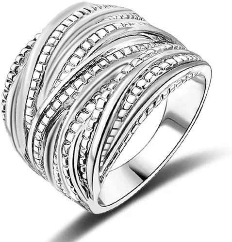 Mytys - Anillo de declaración cruzado entrelazado de 2 tonos, anillos en forma de bandas gruesos de moda para mujeres, anillos para dedo índice