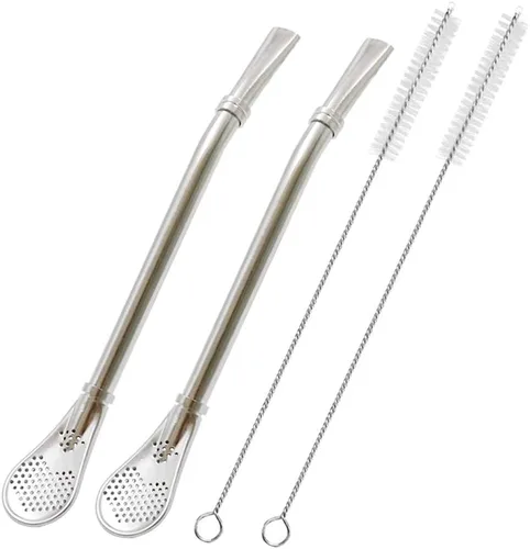 Pregunta sugerida sobre N A Pajitas con cuchara de filtro, paquete de 2 pajitas de té, Mate Bombilla, barra agitadora de café para té helado, cóctel, con 2 cepillos ¿Qué incluye exactamente este set?