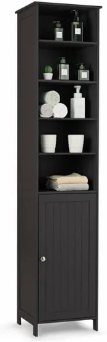 na Estante de almacenamiento de piso alto de 72 pulgadas para baño, estante multifuncional marrón