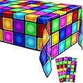 Oudain 3 Pcs Disco Tablecloth 54" x 108" Neon Table Cloths for 70s Party Decorations Table Runner Colorful Plastic Rectangle Tablecover for 1970s