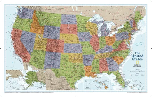 Mapa de pared de tamaño póster: este mapa de pared mide 32 x 20.25 pulgadas, que es un tamaño perfecto para una colección de mapas de pared IMPRESIÓN DE ALTA CALIDAD: Su mapa laminado tiene un acabado brillante para que pueda usar marcadores de borrado en seco en el mapa para resaltar características, hacer planes y compartir información única con otros. La laminación también es extremadamente duradera, resistente al plegado o al desgarro ROLLADO EN UN TUBO RESISTENTE: Su mapa está enrollado y empaquetado en un tubo resistente para protegerlo durante el envío CARTOGRAFÍA ÍCNICA: Los mapas de National Geographic son el estándar contra el que se miden los demás. Puede contar con que este producto tenga contenido y visualización de la más alta calidad en la industria. ESCALA: 1:6,395,000
