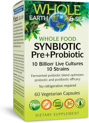 Apoya tu salud digestiva e inmune con Whole Food Synbiotic Pre + Probiotic;* Este suplemento a base de plantas, una vez al día, proporciona 10 mil millones de células activas para reponer y restaurar tu intestino* Una mezcla única de alimentos integrales para apoyar la salud general;* Synbiotic aprovecha el poder de la fermentación natural para proporcionar 10 cepas activas con prebióticos orgánicos en cada porción* Simplemente tome 1 cápsula al día con o sin alimentos; para mayor eficacia, tomar al menos 2-3 horas antes o después de los antibióticos Nuestra fórmula es 100% fermentada naturalmente para mejorar la capacidad de tu cuerpo para digerir y absorberlo;* Synbiotic es vegano, sin gluten, sin OMG, sin soja y sin lácteos Certificado por terceros: probado de forma independiente para OMG y más de 800 contaminantes utilizando tecnología avanzada como espectrometría de masas para garantizar la pureza y la potencia