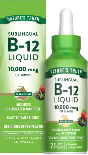 Líquido B-12 de alta potencia: Reciba 10,000 mcg de vitamina B-12 en una fórmula líquida de acción rápida Apto para veganos: deliciosas gotas sublinguales con sabor a bayas, no requiere refrigeración Honesto y transparente: Nature's Truth se compromete a ofrecer productos de bienestar de la mejor calidad Expertos en los que puede confiar: Respaldado por tres generaciones de innovadores de vitaminas para una calidad inigualable Fabricado sin: gluten, trigo, levadura, leche, lactosa y color artificial, y sin OMG