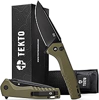 TEKTO F3 Charlie - Cuchillo plegable con bloqueo de botón, hoja de borde fino, mango táctico OD verde G10, cuchillo de bolsillo fácil de abrir con