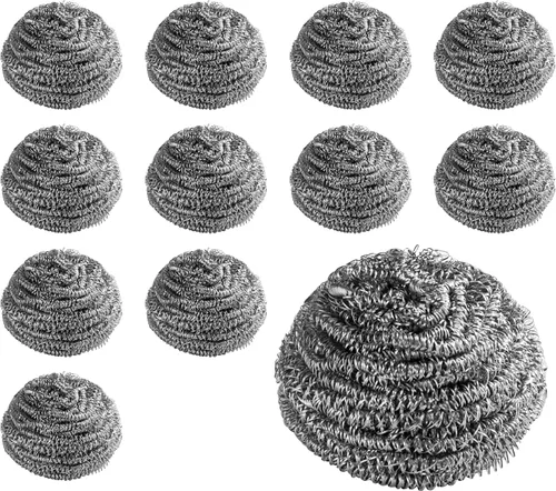 Construcción de acero inoxidable de alta calidad hecha de acero inoxidable de alta calidad para ofrecer resistencia y durabilidad confiables para tareas de limpieza exigentes. Potencia de fregado extra grande y resistente. Cada limpiador pesa 1.76 oz, proporcionando mayor superficie y dureza para eliminar alimentos, grasa y residuos horneados. Diseño de hilo de alambre único de calidad comercial La construcción de una sola hebra ayuda a evitar que se desenrede y los extremos sueltos, prolongando la vida útil del producto en entornos de alto uso. Resistente al calor, productos químicos y corrosión Construido para soportar agua caliente, detergentes y productos químicos de limpieza comunes mientras resiste el óxido y la corrosión. El paquete a granel para uso doméstico o profesional incluye 12 esponjas de acero inoxidable, ideales para restaurantes, operaciones de servicio de alimentos y limpieza frecuente del hogar.
