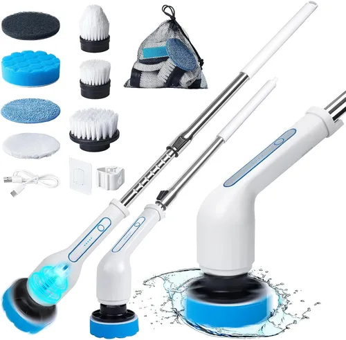 Limpiador eléctrico giratorio, cepillo de limpieza inalámbrico con 7 cabezales de cepillo reemplazables, limpiador eléctrico 2 velocidades