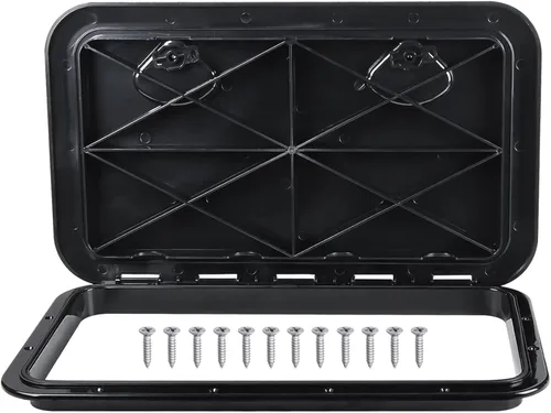 Tamaño total de la escotilla del barco: aproximadamente 14 x 24 pulgadas Cubierta de escotilla de cubierta de plástico ABS de alta calidad, fuerte y duradera Escotilla de acceso a cubierta marina suministrada con 2 asas empotradas fuertes El sello de goma garantiza la impermeabilidad cuando se monta en superficies verticales Grosor de la cubierta: aproximadamente 1 pulgada. La escotilla se adapta al grosor máximo de la pared: aproximadamente 0.9 pulgadas La tapa de la escotilla tiene bisagras 180° y cubre completamente la brida de montaje para un atractivo acabado al ras
