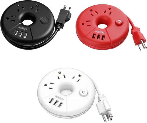 Cable de extensión corto y protecciones: cable de alimentación corto de 15 pulgadas (15.0 in) que envuelve la ranura lo que hace que sea fácil de almacenar; el chip inteligente interior detecta y ofrece protección completa contra cortocircuitos, sobrecarga, sobrevoltaje, y la regleta de alimentación está aprobada por FCC y RoHS [Para mesita de noche y escritorio de mesa]: la regleta de alimentación de escritorio USB con interruptor funciona muy bien en tu mesita de noche y escritorio. Comprueba la altura real entre tu mesita de noche y enchufe de pared ❤para manejar tu altavoz Bluetooth, portátiles, teléfono inteligente, iPads, batería de la cámara Imprescindible para el crucero: la regleta de alimentación en forma de dona sin sobretensiones viene con 3 tomas/3 puertos USB y tiene el tamaño perfecto que cabe perfectamente en la palma de tu mano. Ideal para cruceros de viajeros frecuentes, hoteles, hogares donde hay pocos puntos de venta inalcanzables PROTECCIONES COMPLETAS: La regleta de crucero de viaje está aprobada por la FCC y RoHS con carcasa exterior de alta temperatura, lo que garantiza una protección completa contra cortocircuitos eléctricos, sobre calor, sobrecarga, sobrecorriente y sobrevoltaje Compra sin complicaciones: no te preocupes si la ventana de devolución de Amazon se cierra después de 1 mes. Póngase en contacto con nosotros directamente dentro de los 18 meses de garantía para reemplazo o reembolso relacionados con la calidad. La regleta de viaje NTONPOWER también está respaldada por un seguro de responsabilidad civil de dispositivos conectados de $300, 000. No conecte electrodomésticos que consuman mucha energía, como secadores de pelo o planchas de vapor