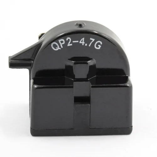 Nombre del producto: Relé de arranque QP2-4.7; Resistencia: 4.7 Ohm Número de pin: 1 Tamaño total: 1.3 x 0.8 x 1.1 in / 1.3'' x 0.8'' x 1.1'' (largo x ancho x alto) Material: plástico. Color: negro