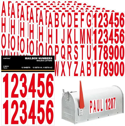 Tamaño y cantidad: 12 juegos de números de buzón de 3 pulgadas 0-9 y 6 juegos de letras de buzón de 3 pulgadas A-Z, 12 hojas, 144 números y 168 letras en total. Fácil de usar: estas calcomanías para buzón utilizan un diseño autoadhesivo, simplemente retira el papel protector posterior, pégalas donde quieras. Aplicaciones múltiples: se pueden aplicar a cualquier superficie lisa, limpia y seca como una señal, adecuado para buzón, dirección de la casa, basura, gabinete de almacenamiento, armarios, puertas, etc. Resistente a la intemperie y duradero: resiste grietas en climas fríos, calor extremo y lluvia. Con una fuerte adherencia, las calcomanías de números pueden durar hasta 2 años para uso en exteriores. Atención al cliente: Cualquier pregunta que tenga, por favor contáctenos. Estaremos encantados de ayudarle y responder en 24 horas.