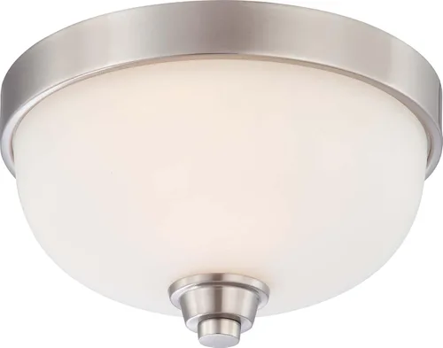 Reseña del editor Nuvo Iluminación 60/4191 Transitional One Light Flush Mount de la colección Helium en Pwt, Níquel, B/S, Plata. Acabado, Altura: 6. 25 pulgadas. Ancho: 11. 25 pulgadas Estilo: Tipo de luz de transición: Cerca del techo Clasificación de seguridad: cULus y listado de seguridad: húmedo Número de luces: 1, Tipo de bombilla: A19, bombilla(s) incluida: No From the Manufacturer This flush dome fixture's strong, yet open and airy this structure is the right match for many contemporary home designs. Finished in Brushed Nickel with a satin white glass shade.