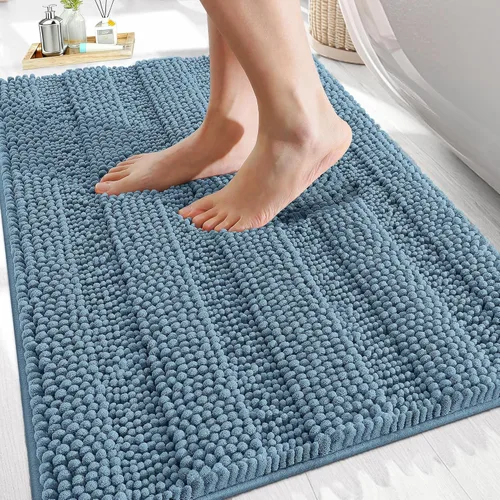 OLANLY Tapetes de baño gruesos de chenilla a rayas de 30 x 20 pulgadas, extra suaves, absorbentes, con parte trasera de goma, se pueden lavar y