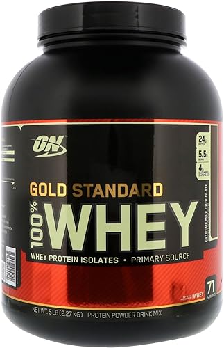 Optimum Nutrition Gold Standard 100% proteína de suero en polvo, chocolate con leche extremo, 5 libras (el embalaje puede variar)