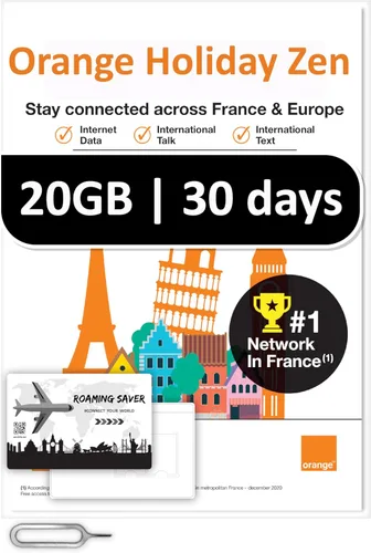 Orange Holiday Europe Prepaid Sim 20GB Internet Data | 30 días de uso | Se permite la conexión de datos | 30 minutos y 200 SMS de Europa a cualquier