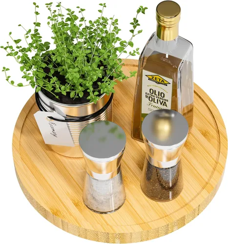 Asistente de cocina: organizador Lazy Susan perfecto para organizar sal, vinagre, pimienta, aceite de oliva cerca de la estufa y de fácil acceso; pieza central para mesa para sostener portaservilletas, miel, canela, azúcar y un jarrón; ayuda a mantener la mesa agradable y organizada Calidad: Delicatemente hecho para ser más duradero y más estable, color encantador, superficie lisa, fácil de limpiar, no necesita montaje; Lazy Susan se ajusta perfectamente a la cocina. Su alta capacidad le permite ahorrar más espacio en la cocina limitada para que pueda poner más artículos Diseño actualizado: El plato giratorio acrílico más grande con 3 almohadillas de prevención de deslizamiento de gel de sílice hace que el organizador Lazy Susan gire más suave y silencioso. Puedes obtener cualquier artículo desde cualquier ángulo. El labio adicional evita que los artículos se caigan Alta calidad: Organizador de tocadiscos Lazy Susan hecho de bambú renovable. Amigable con el medio ambiente. El tamaño adecuado de 9" x 9" hace que el gabinete, el clóset, la isla de cocina y la mesa estén limpios y bien organizados Regalo de moda: Con apariencia suave y delicada, empaque de regalo simple y elegante, y función útil, este organizador giratorio es un regalo perfecto para todos los amantes de la cocina y héroes del hogar