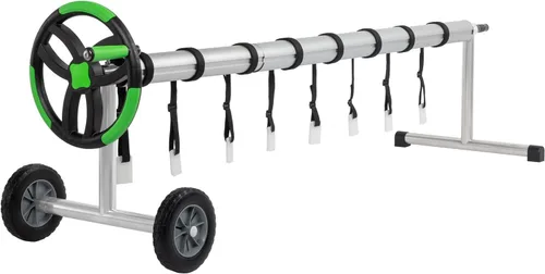 Outvita Juego de carretes de cubierta de piscina de 18 pies, rodillo de aluminio de cubierta solar con ruedas de goma para piscinas al aire libre